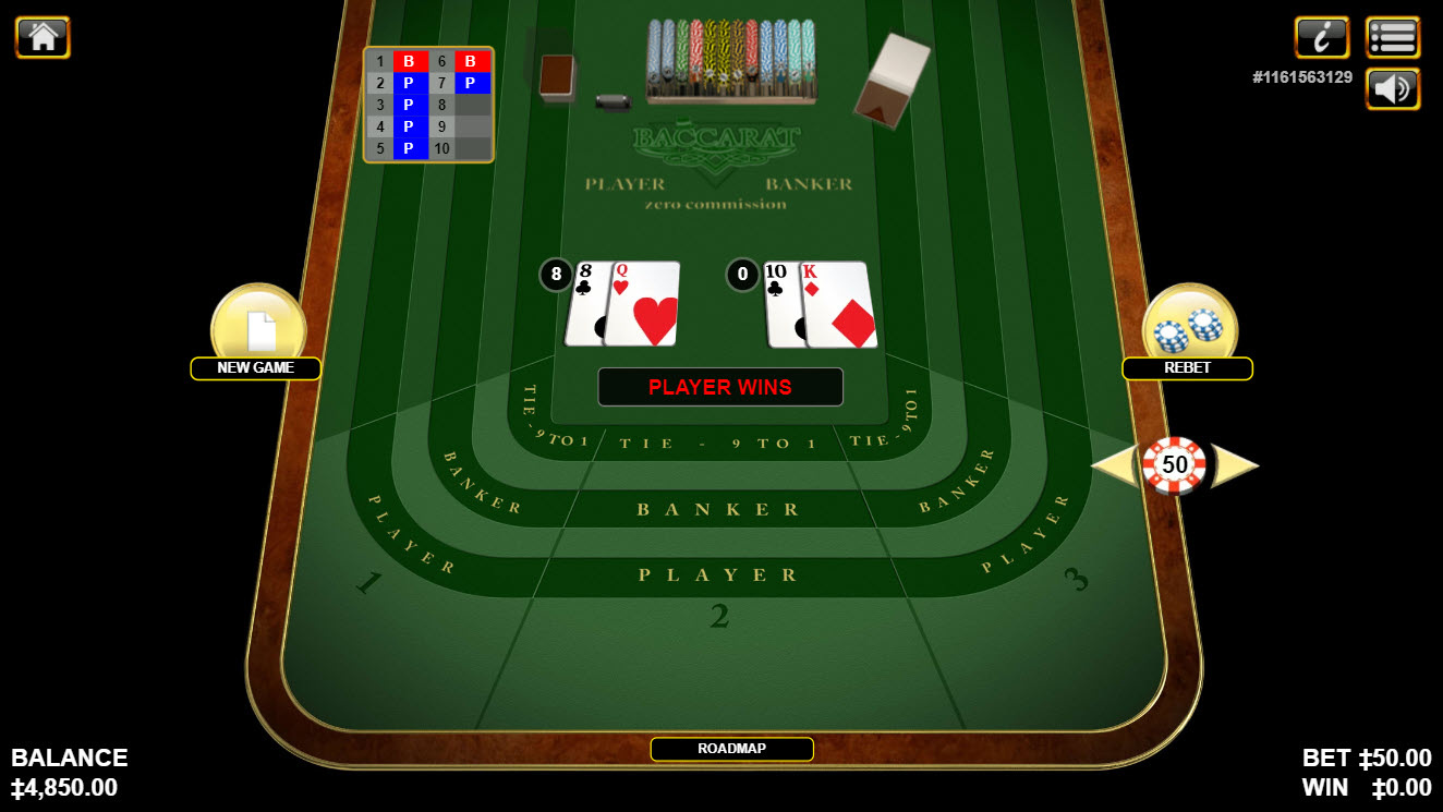 Они любезно выплачивают 11 к 1 на ставку на ничью, что снижает преимущество казино с обычных ужасных 18,65% до 11,25%. Это все еще ужасная ставка, но они заслуживают похвалы за то, что немного облегчили положение игроков.