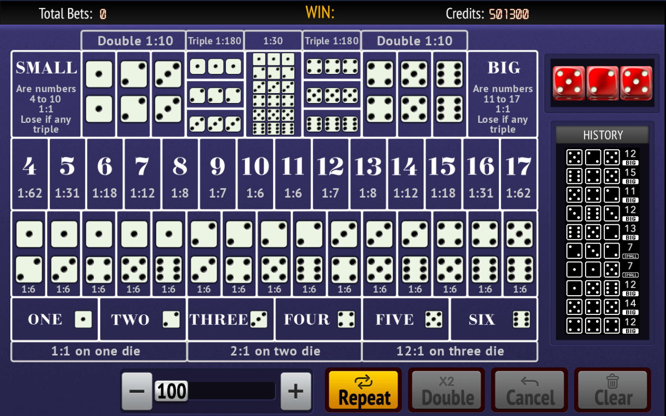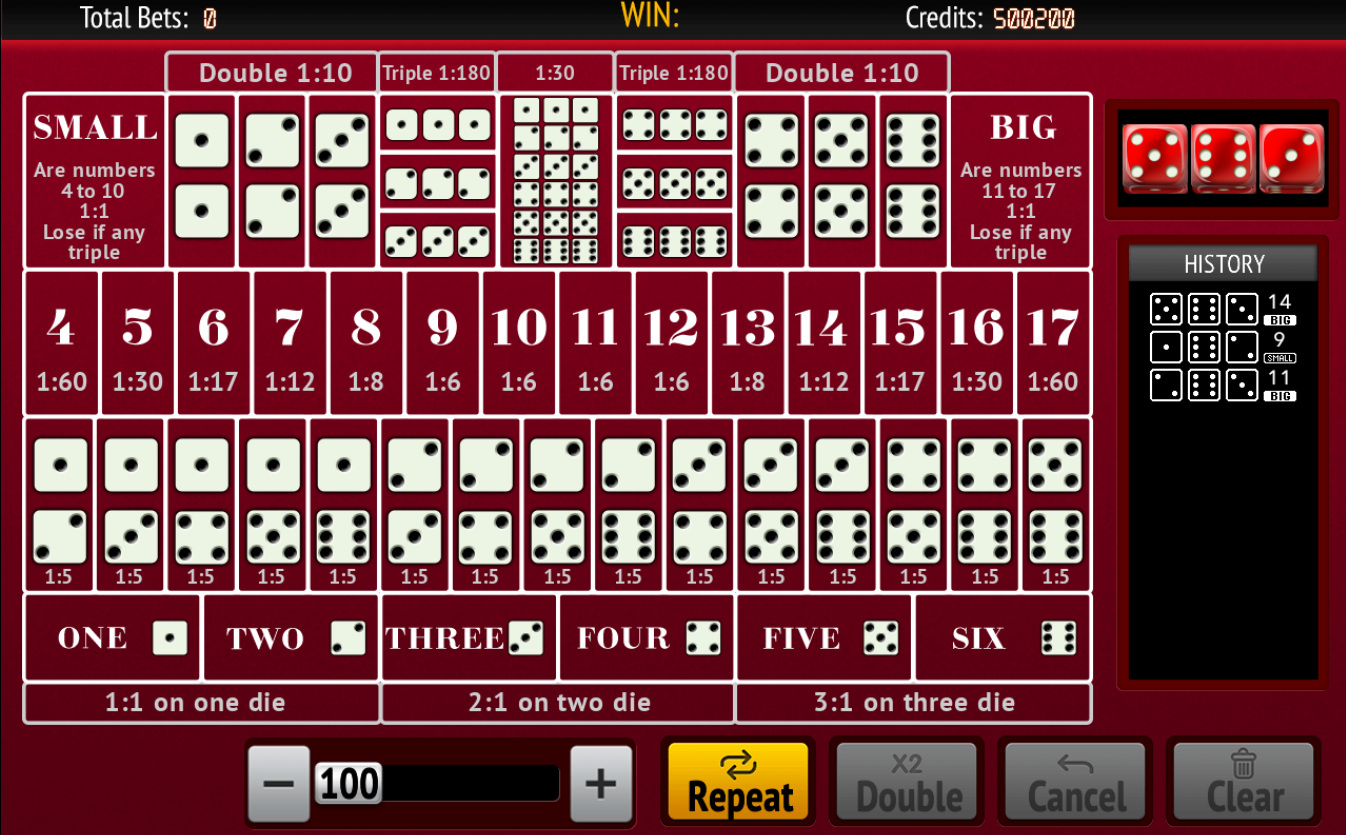 Обе игры в сик бо кажутся идентичными, за исключением того, что в австралийской версии шансы на выигрыш выше, и игра ведется на синем, а не на красном сукне. Зачем кому-то играть за обычным красным столом, я не знаю, но уверен, что играют. В следующих двух таблицах показаны ставки, коэффициенты, вероятность выигрыша и преимущество казино для обеих версий.