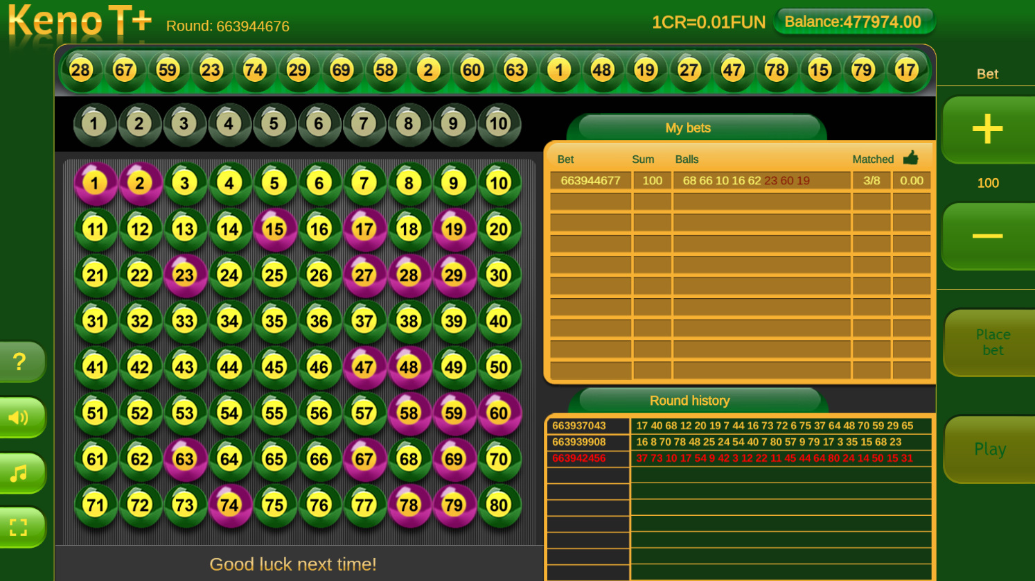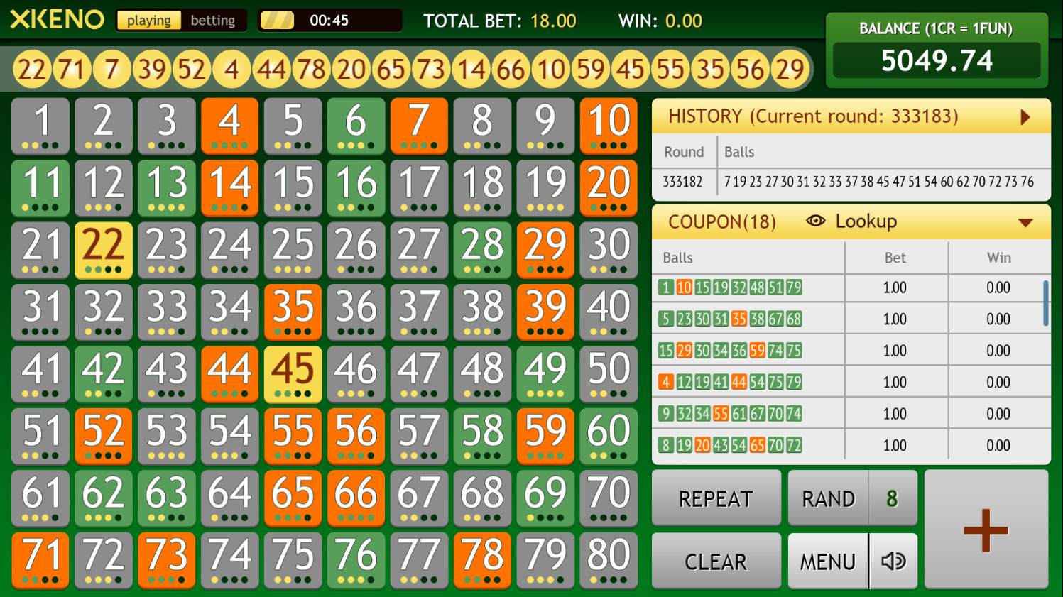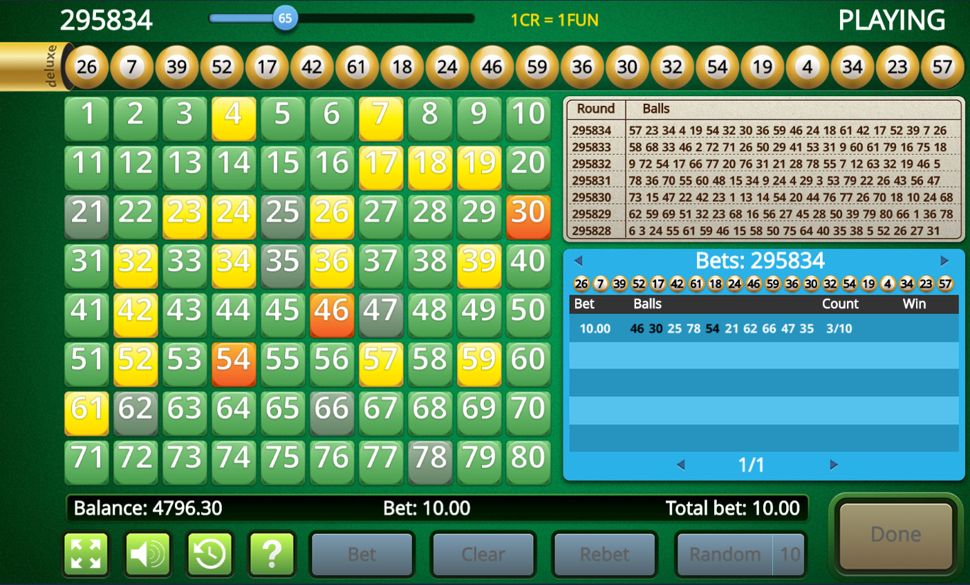 Эта игра имеет тот же формат и таблицу выплат, что и X Keno, описанная выше. Главное отличие заключается в отсутствии периода ожидания между играми: просто нажмите «играть», чтобы начать розыгрыш шаров.