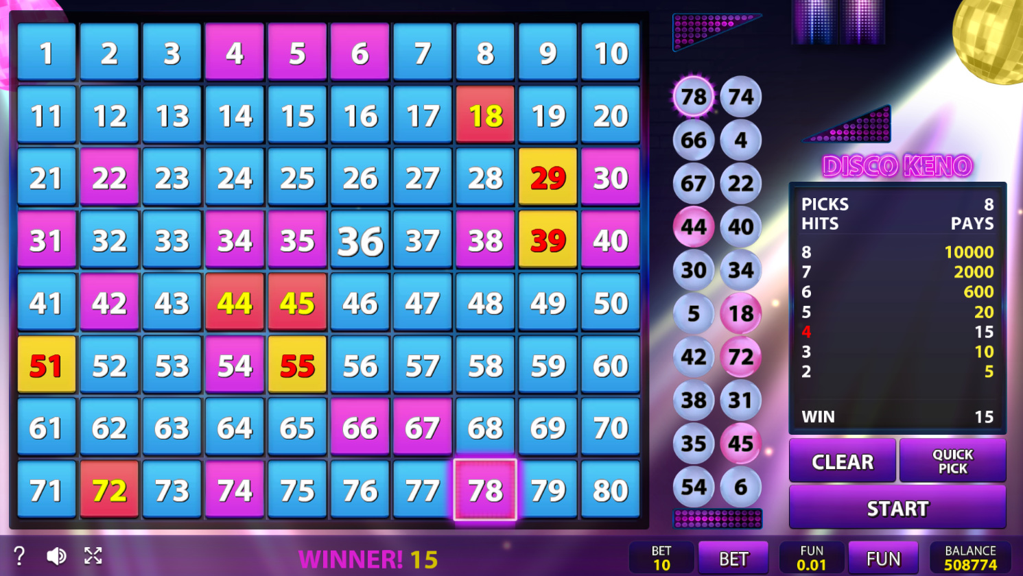 Эта игра, похоже, идентична X Keno, включая период ожидания между играми и ту же таблицу выплат. Единственное отличие, которое я вижу, — это неоновый скин.