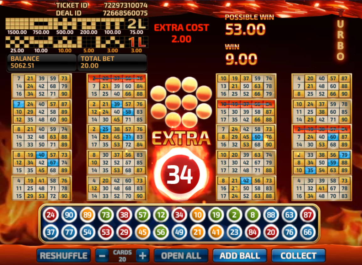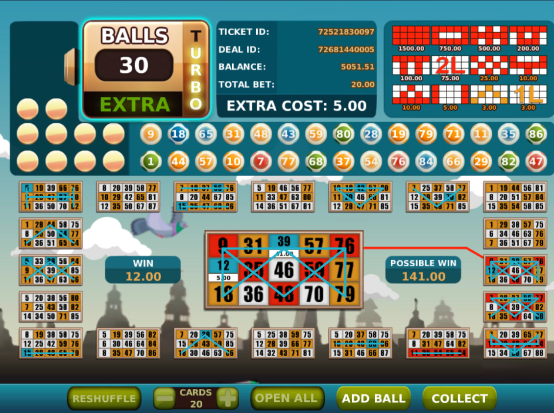 Обе игры в бинго проводятся на латиноамериканских карточках 3x5. Игрок может приобрести дополнительные шары, цена которых, как я предполагаю, зависит от ожидаемого выигрыша. Таблицы выплат одинаковы, поэтому я предполагаю, что это «скины». Информация о возврате средств отсутствует.