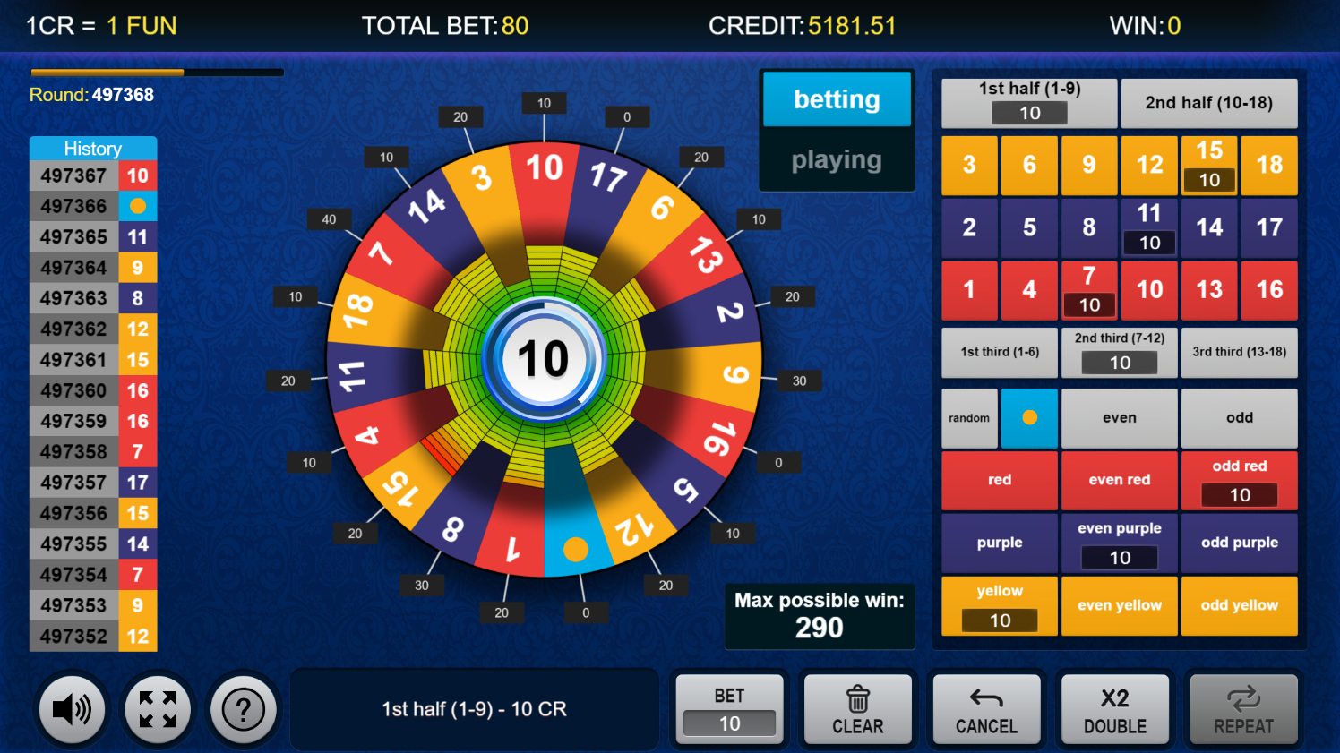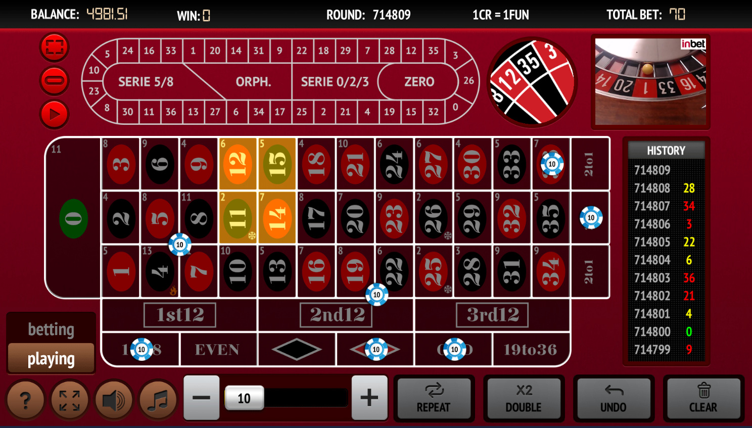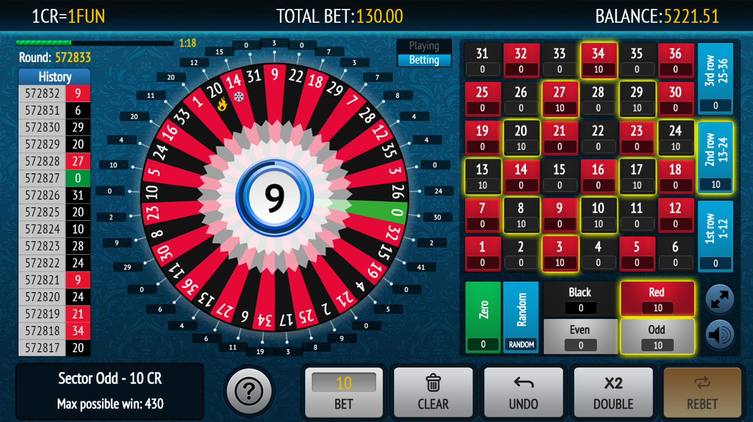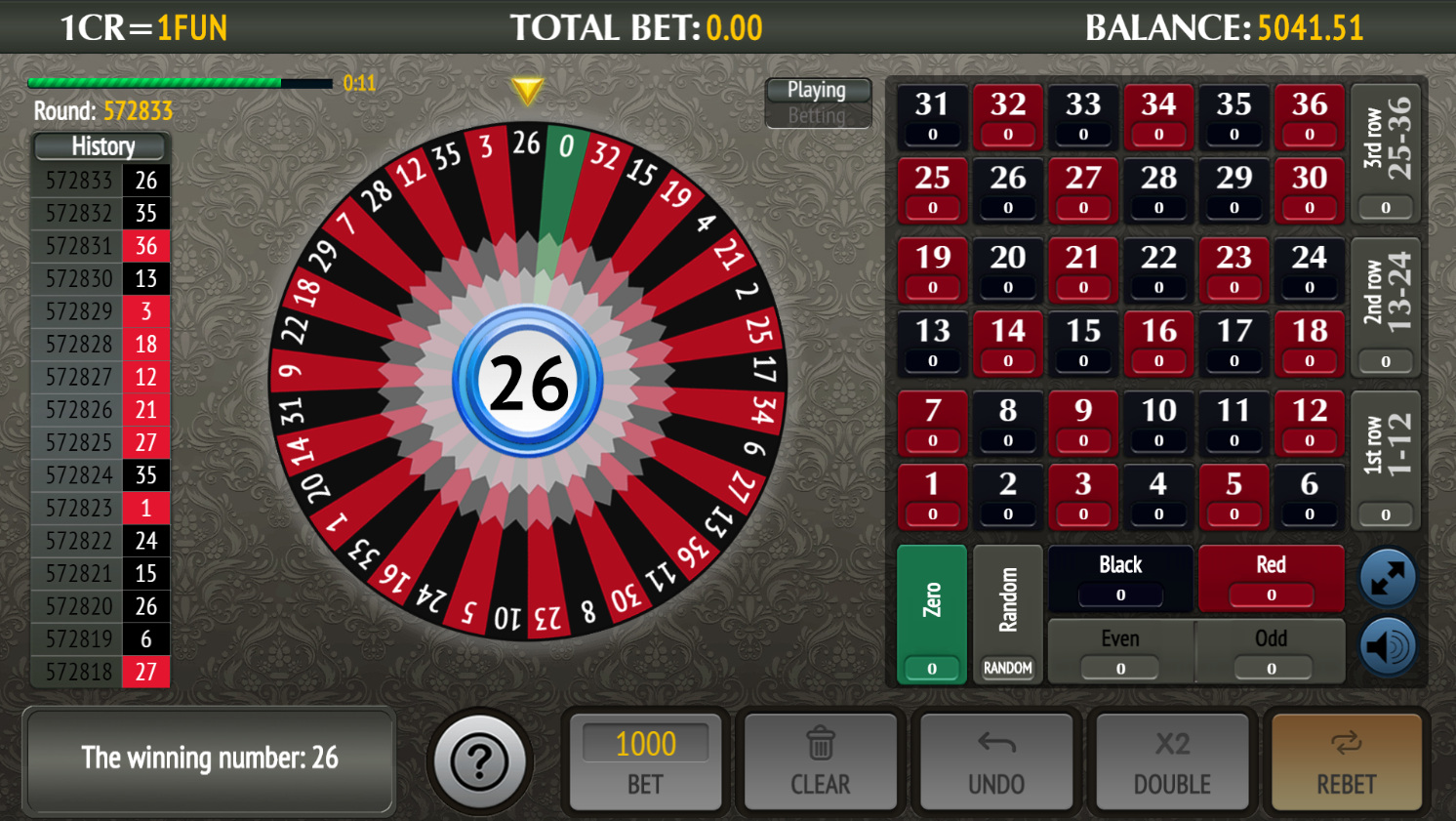 Существует три способа игры в рулетку с 37 номерами. Первый — это «живая рулетка», стандартная игра в рулетку, основанная на результатах вращения реального колеса. Раунд проводится примерно раз в 60 секунд. Два других способа — это «Фортуна» и «Черная Фортуна». Математически они идентичны рулетке, но игра ведется на вертикальном колесе с игровым полем 6x6. Шансы одинаковы во всех трех случаях, преимущество казино составляет 2,70% на каждую ставку.