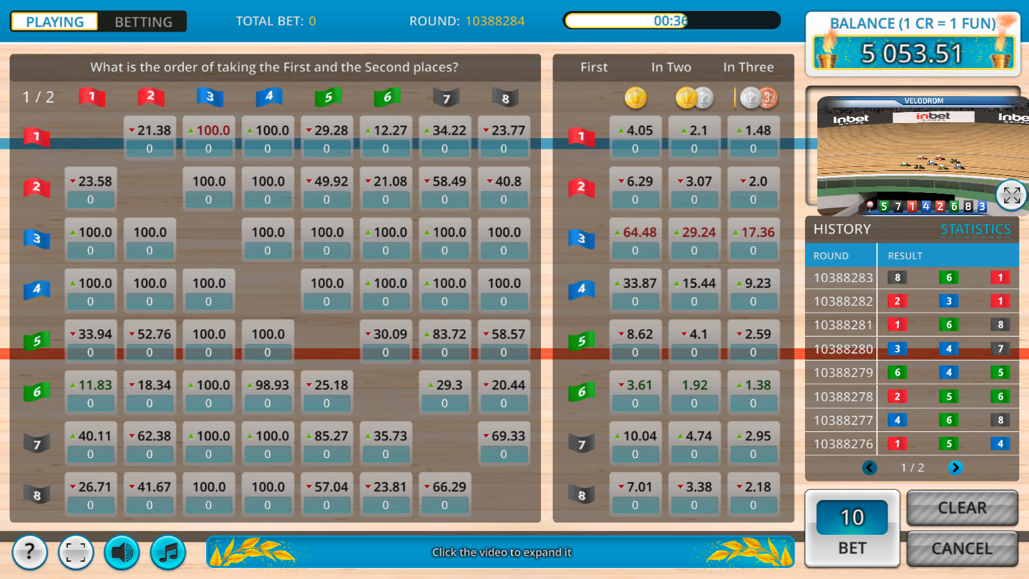 Велодром — это практически копия игры Dogs 3D , только вместо шести собак здесь восемь велосипедистов. После всех расчетов я получаю прибыль в 92% на ставках на победу, призовое место и попадание в тройку лидеров, и 80% на ставках на точный результат.