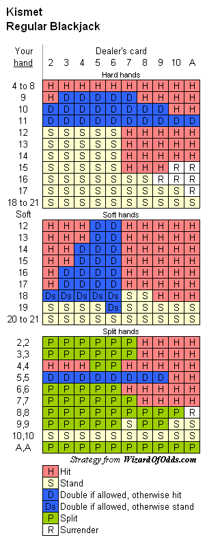 Правила игры в блэкджек с одной колодой «Кисмет»