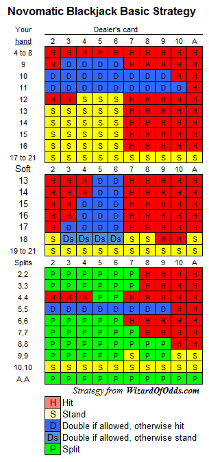 Ниже представлена базовая стратегия, подходящая для колод от четырех до восьми карт. Щелкните по изображению, чтобы увеличить его.