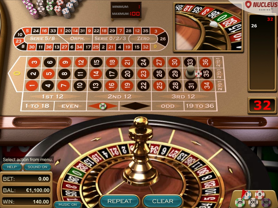 Nucleus предлагает три версии рулетки: две с одним нулем и одну с двумя нулями. Я рекомендую играть только на рулетке с одним нулем.