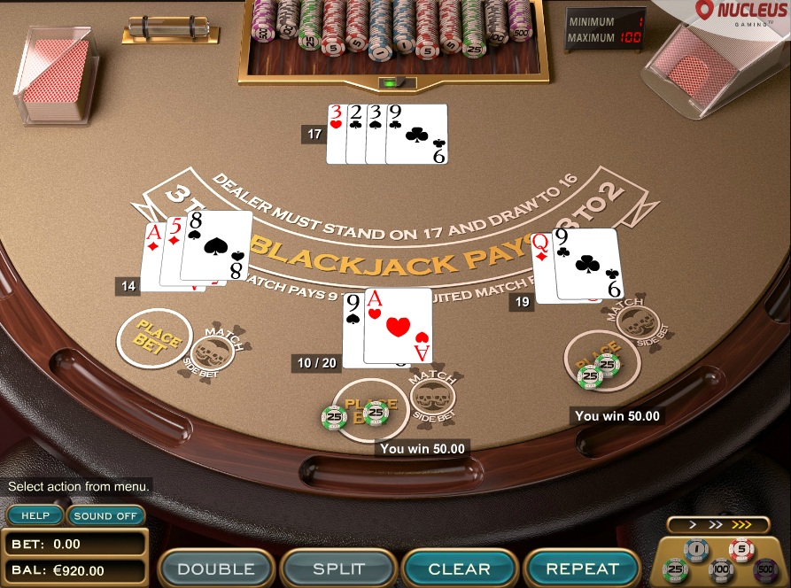 Они также предлагают дополнительную ставку Match the Dealer с обычными выплатами в 4 и 9, что приводит к преимуществу казино в 3,06%.
