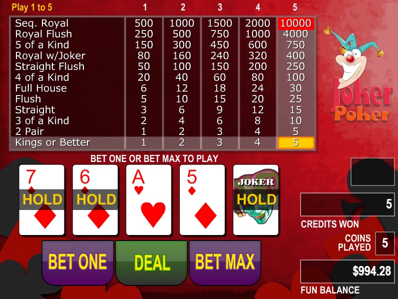 | Joker Poker (kings or better) | 98.47% | Нет | 1-1-2-3-5-6-20-50-80-150-800-2000 | Нет |