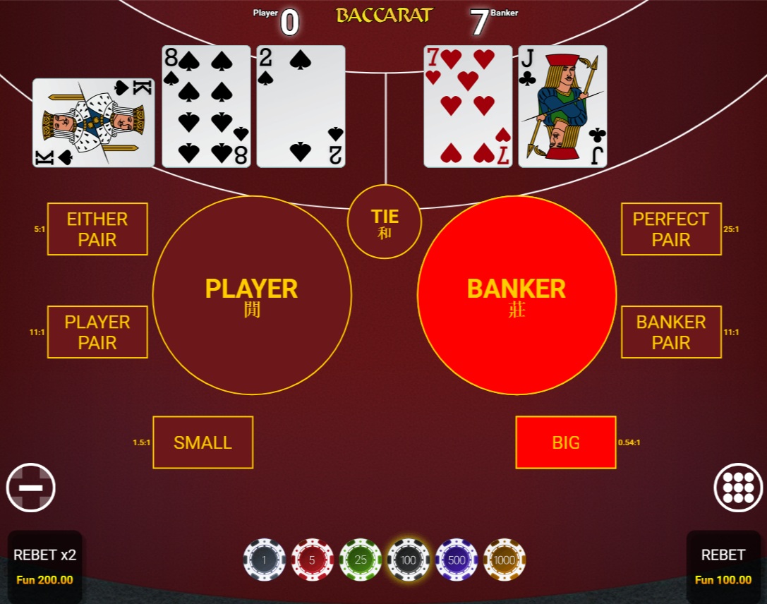 - Баккара — стандартная игра, в которой выплата за выигрыш банкира составляет 0,95.