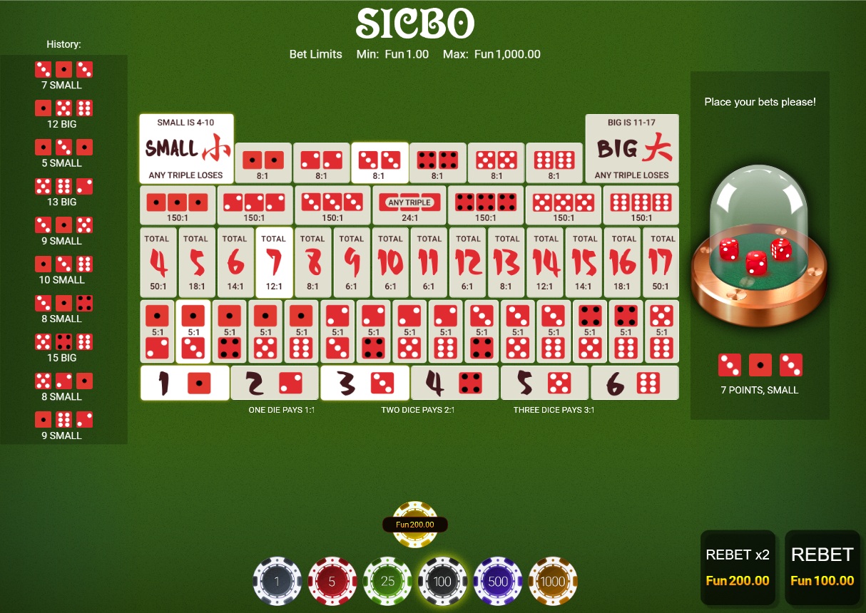 В игре сик бо от OneTouch очень скупая таблица выплат, которая выглядит следующим образом: