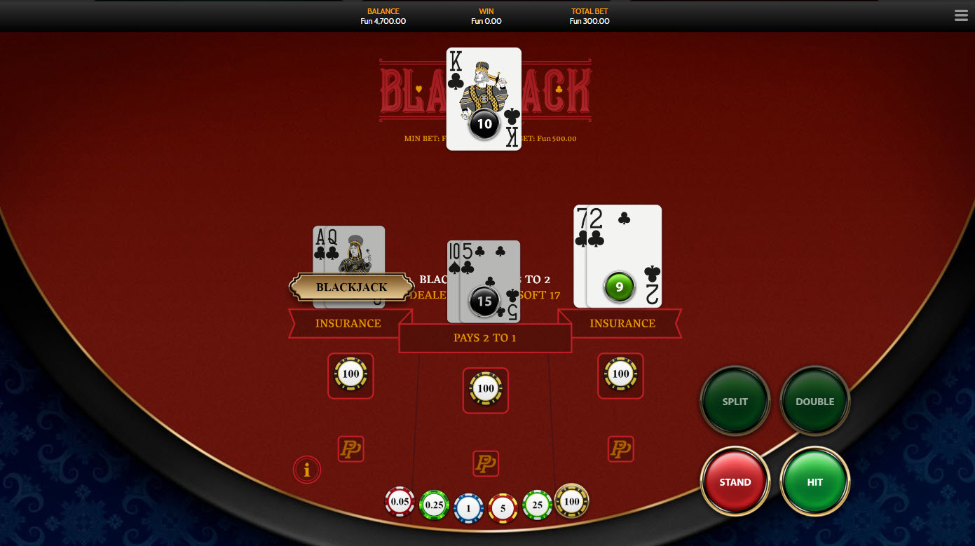 - Страховка, предоставляемая дилером, разрешена, если у игрока три одинаковые карты или больше.