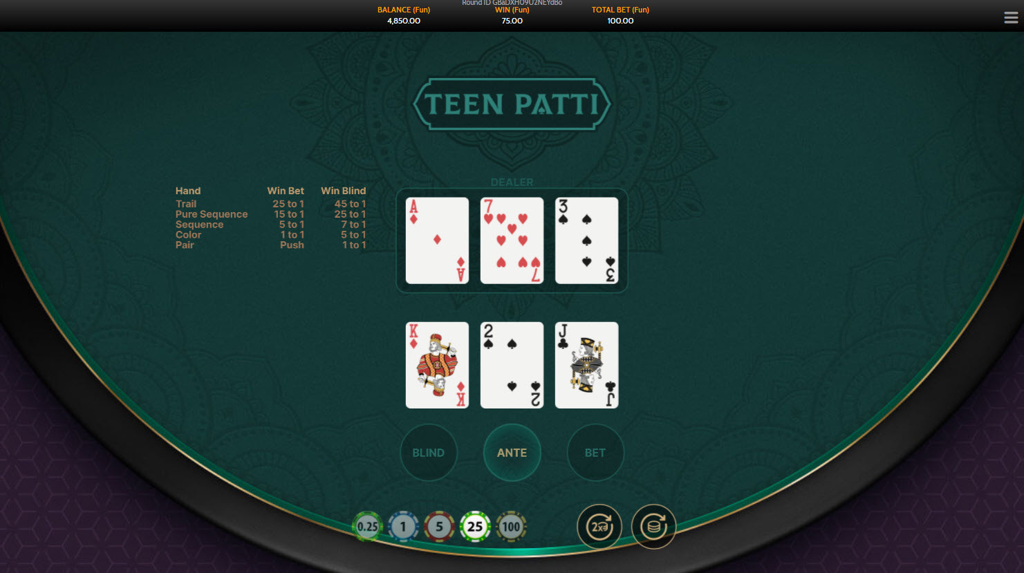 Teen Patti — это простая игра, в которой игрок делает ставки на то, какая из двух трёхкарточных комбинаций будет иметь более высокую покерную ценность. Конечно, есть и дополнительные ставки. Я никогда раньше не видел этой игры, поэтому создал для неё новую страницу. Все правила и анализ вы найдёте на моей странице, посвящённой Teen Patti 20-20 .