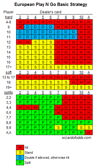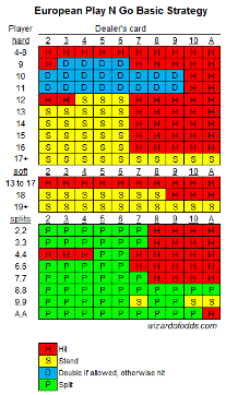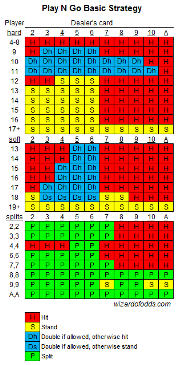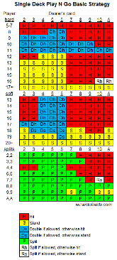 Преимущество казино составляет 1,26% при данных правилах. Нет смысла играть в эту игру, когда в стандартной версии преимущество казино составляет 0,46%. Однако, если вам всё же необходимо сыграть, нажмите на изображение ниже, чтобы увидеть увеличенную версию базовой стратегии для этих правил. Предупреждение: это нетрадиционная стратегия из-за нетрадиционных правил.