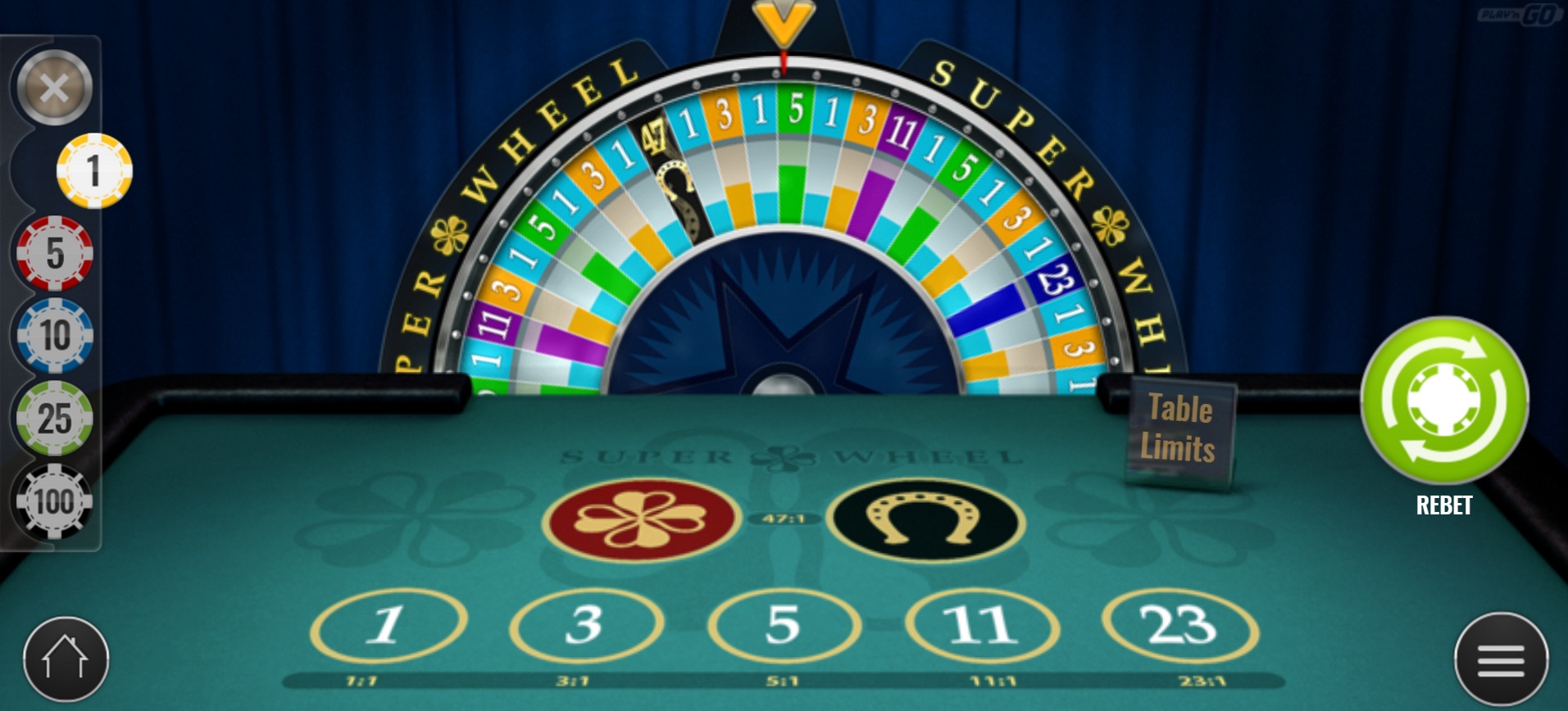 В Play N' Go есть два колеса Big Six . Первое называется Money Wheel и следует строгим правилам Макао, где преимущество казино варьируется от 7,69% на ставки в 1, 3 и 5 долларов до 19,23% на ставку в 20 долларов. Вместо этого, если вы все же хотите сыграть, игра Super Wheel следует либеральным австралийским правилам, где преимущество казино составляет 7,69% на каждую ставку.
