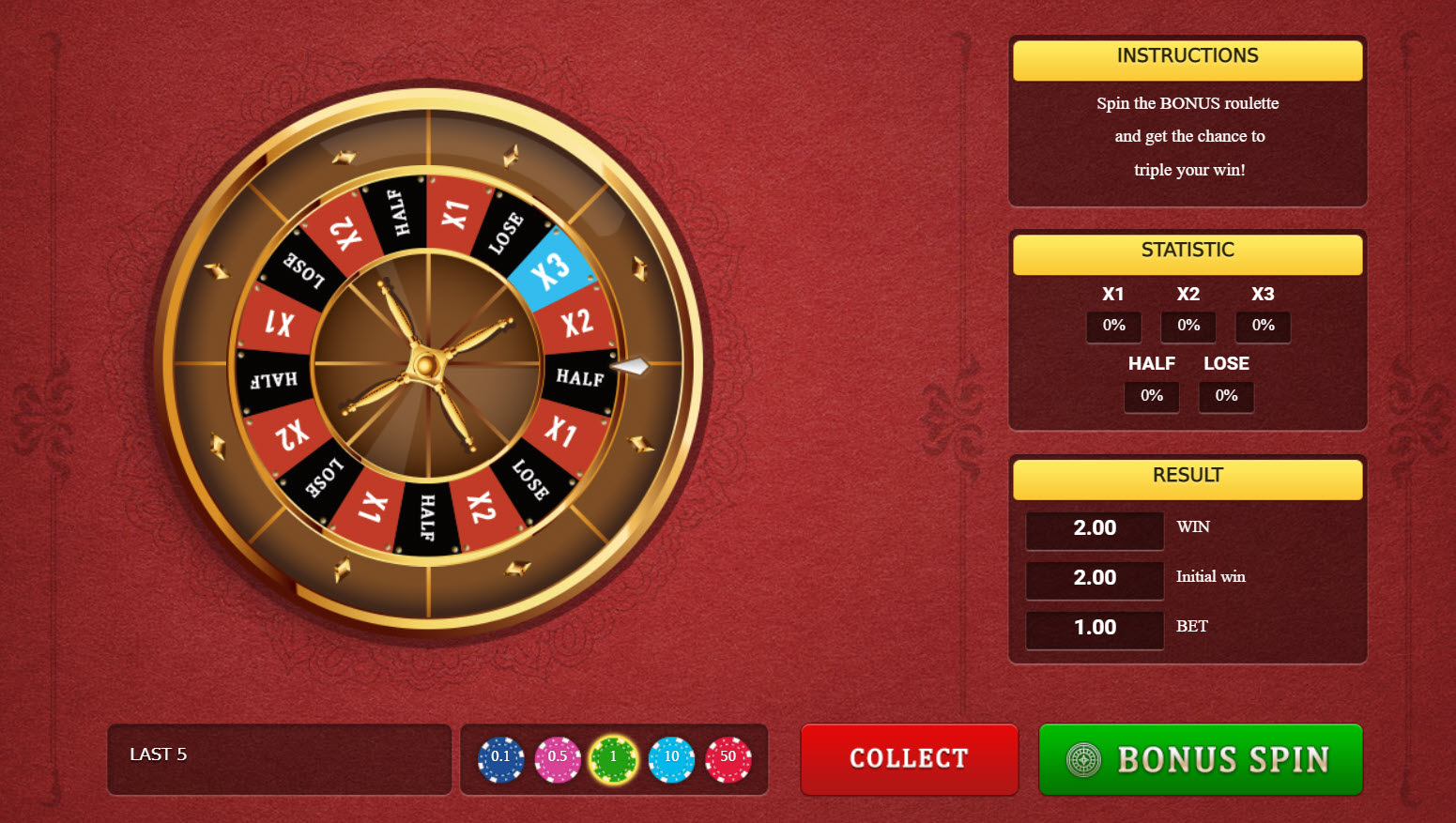 На сайте также есть игра под названием «Бонусная рулетка», в которой игрок может объединять выигрыши на бонусном колесе. В таблице ниже показаны сектора на бонусном колесе. В нижней правой ячейке указана средняя доходность в 100% на бонусном колесе. Раз уж вы играете в азартные игры, почему бы не воспользоваться возможностью, не имеющей преимущества казино?