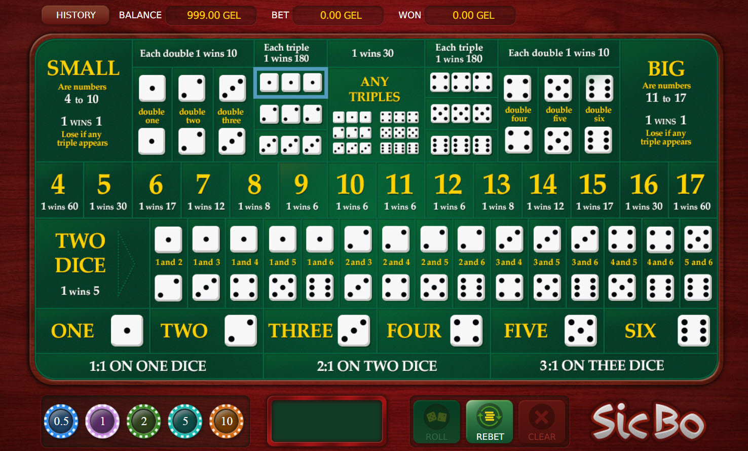 В игре сик бо шансы на выигрыш довольно скромные, как показано в таблице ниже.