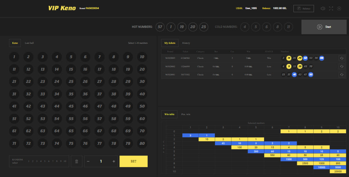 Классическое кено и персональное кено кажутся мне одним и тем же. В обеих играх используется следующая таблица выплат. Есть ещё одна игра, называемая русским кено, но у меня не получилось её запустить.