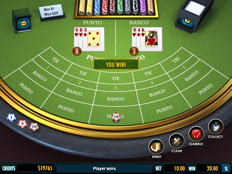 На выбор предлагается не менее пяти игр в баккару . Единственные различия между ними заключаются в лимитах ставок и размере выигрыша при ничьей. Лимиты ставок указаны ниже, согласно данным казино Mission 2 Game: