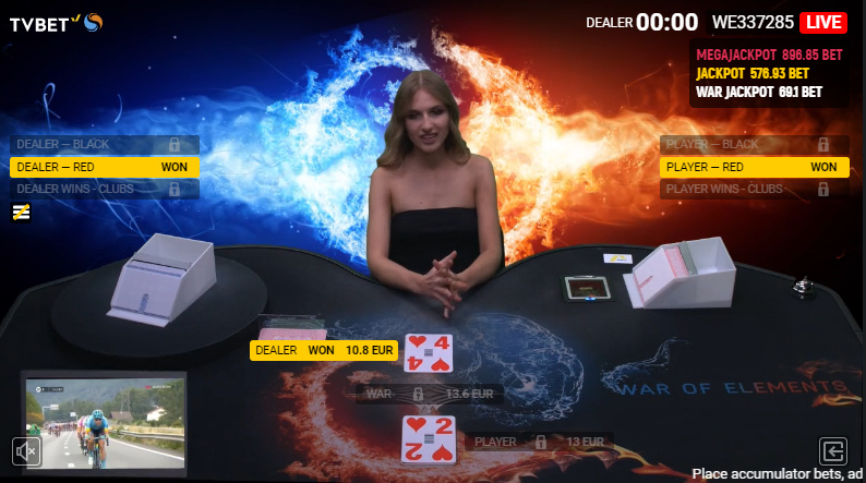 War of Elements — это усовершенствованная версия Casino War. Используется одна колода карт. Игрок может делать ставки на выигрышную сторону, а также множество дополнительных ставок. Коэффициенты динамически обновляются по мере того, как дилер перебирает карты в колоде. По всей видимости, игра очень похожа на War of Bets .